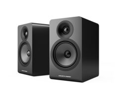 - Two-way standmount speaker with integrated class A/B amplification and fully active filter networks