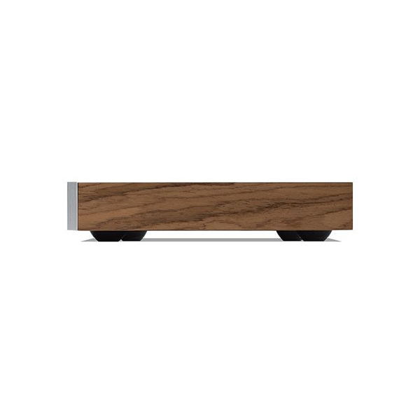 - A solid walnut clad plinth, heavy aluminium platter and curved aluminium tonearm