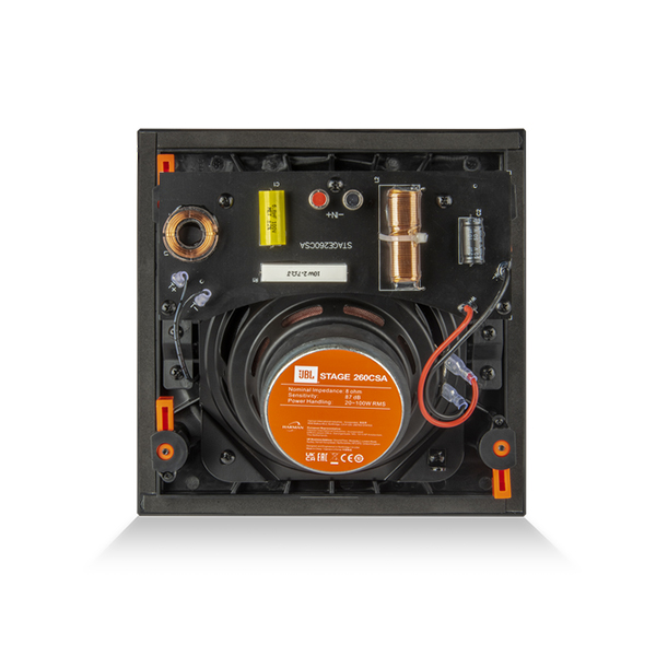 The angled design of the Stage 260CSA allows for accurate aiming of the 6.5″ (165mm) Polycellulose cone woofer and 1″ (25mm) Aluminum dome tweeter with acoustic lens waveguide towards the listening area.