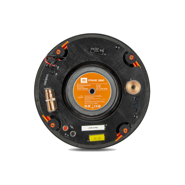The Stage 280C has an 8″ (200mm) Polycellulose cone woofer and 1″ (25mm) Aluminum dome tweeter with an acoustic lens waveguide.