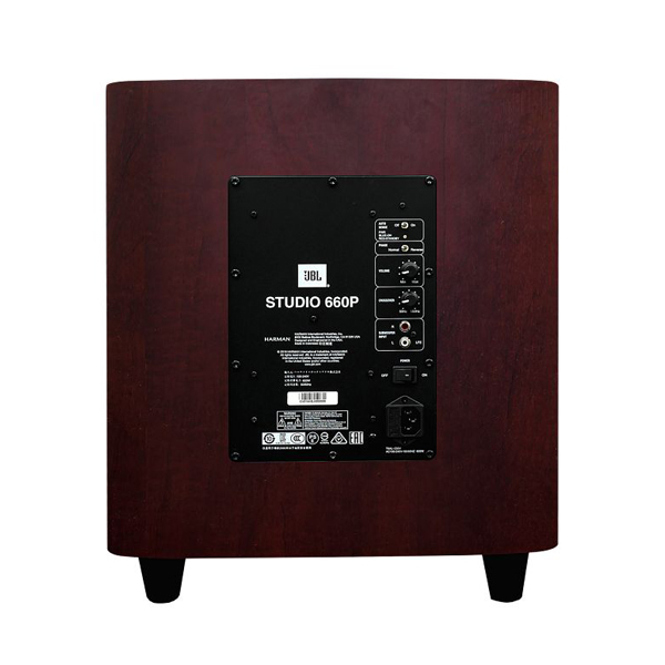 The JBL Studio 660P is a high-performance powered subwoofer utilizing a front-firing 12-inch PolyPlas cone woofer with dual down-firing tuned ports.