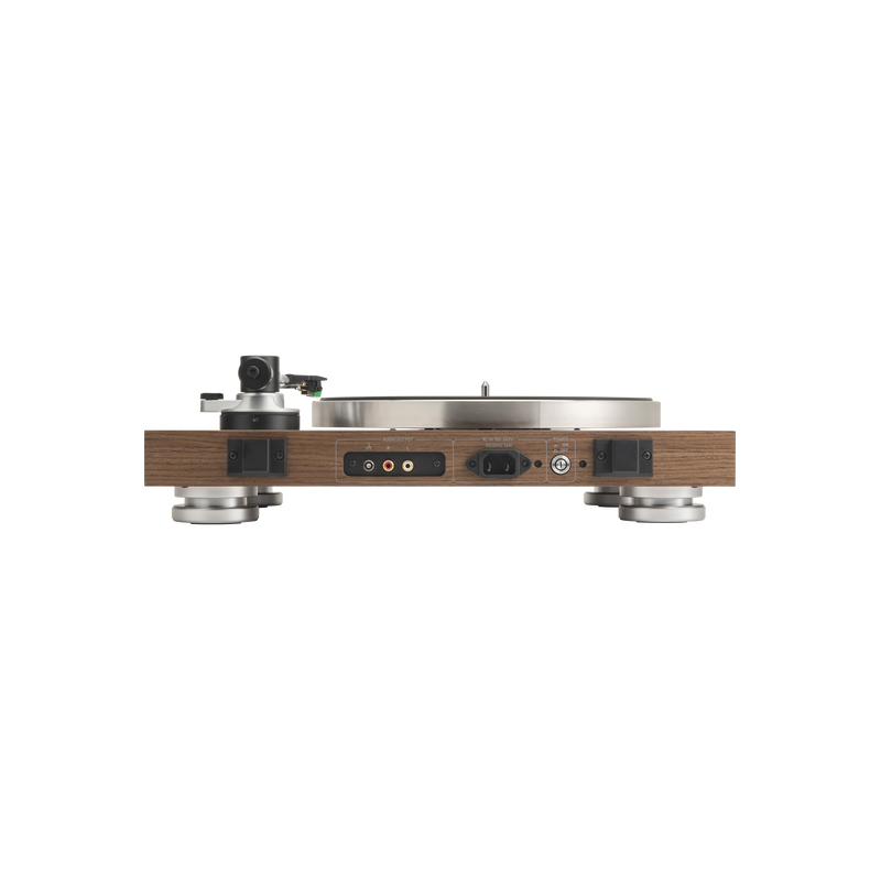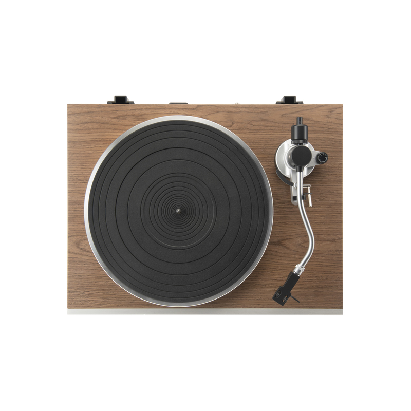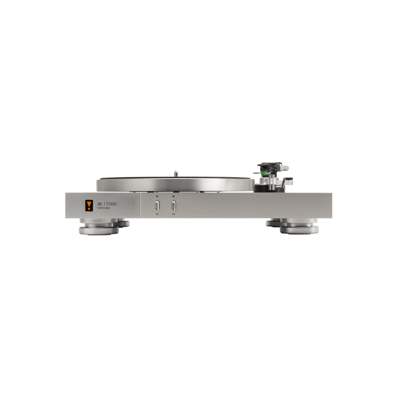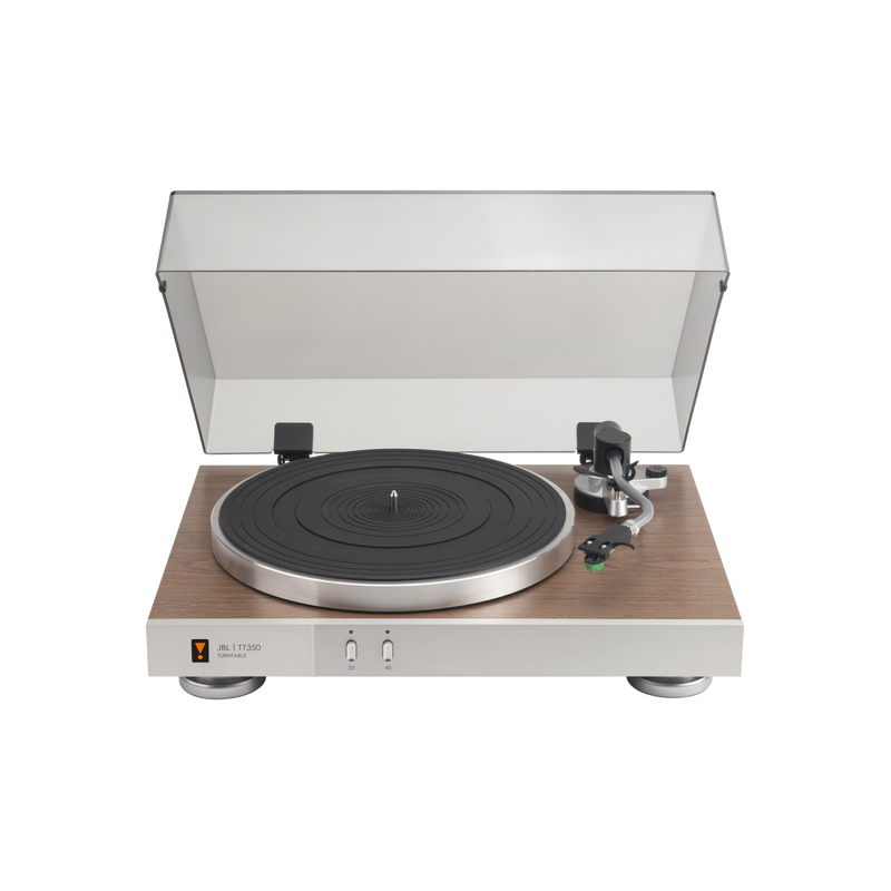 Get intimate with your record collection with the JBL TT350 Classic. With a solid walnut clad plinth, heavy aluminum platter and curved aluminum tonearm, the TT350 Classic is testimony to the joy of music and vinyl records. The Direct Drive motor ensures your records are played in perfect time with powerful dynamics at 33.3 rpm for LPs and 45 rpm for EPs and singles. Rotational speeds are locked with a speed sensor for perfect pitch. The tonearm features a high-quality moving magnet cartridge pre-installed on a removable head shell for easy replacement and upgrade. The vertical tracking angle (VTA) is adjustable to allow for larger or smaller cartridges when upgrading. The feet are damped to reduce vibration ingress to the record, and adjustable to allow the TT350 Classic to be positioned on uneven surfaces.